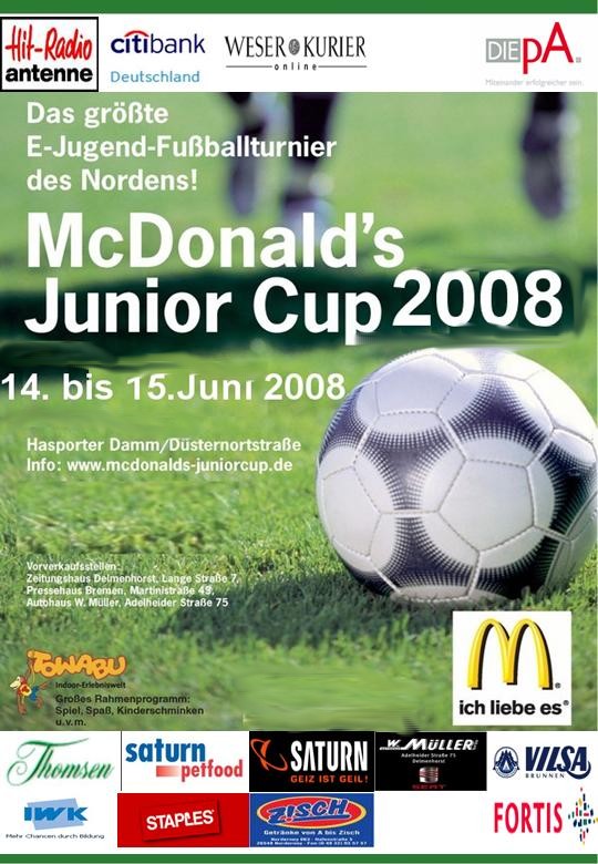 Wie auch den beiden letzten Jahren werden wir am Mc Donald Cup 2008 wieder teilnehmen. Die Liste der teilnehmenden Mannschaften ist unter http://www.mcdonalds-juniorcup.de/ zu finden. Wir erwarten in diesem Jahr den