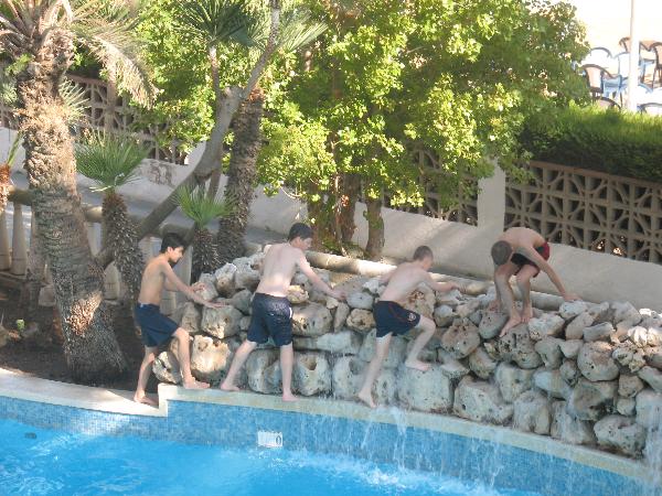 hier versuchen die 4 vom Beckenrand in den Pool zu springen ...