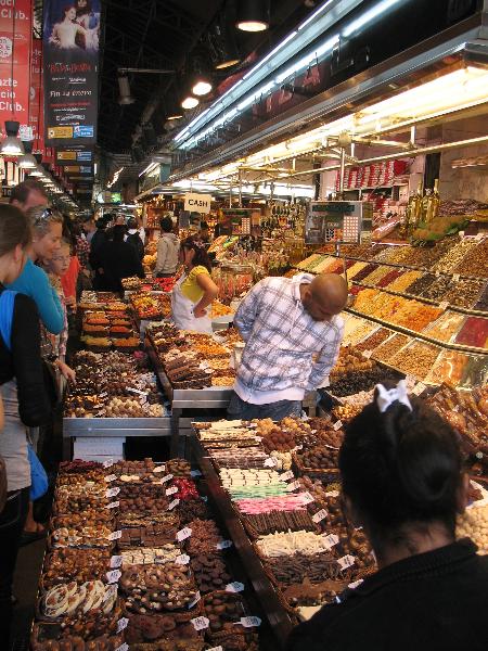 in der Markthalle gibt es u. a. Gemüse, Fisch und viele Süßigkeiten ...