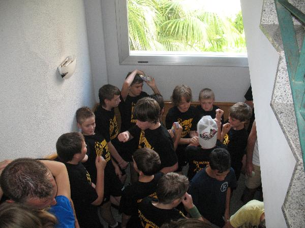 Zuerst einmal meinen Dank an alle die Mitgeholfen haben, dass dieses Turnier ein großer Erfolg wurde (wenn auch nicht aus sportlicher Sicht). Die Jungs haben sich nicht nur während der Hin- und Rückfahrt im Bus super benommen (Aussage des Fahrers), sonder es kam auch in unserem Hotel zu keinen Problemen (im Gegensatz zu anderen Mannschaften). Ich glaube für alle sprechen zu dürfen, wenn ich einmal ein dickes Lob an die Mannschaft erteile !!!!! Nachdem Nico kurz vor unserer Fahrt seine Kündigung abgegeben hatte, nahmen wir kurz entschlossen Franzi (Tinos Freundin) mit. Ich glaube diese Idee war richtig gut. Neben dem Fussball (3 Spiele - 3 Niederlagen) haben wir wir eine ganze Menge für das Sozialverhalten in der Truppe getan, deshalb verwundert es nicht, dass die Truppe sich einstimmig für einen Vereinswechsel zu Tus Hasbergen ausgesprochen hat.